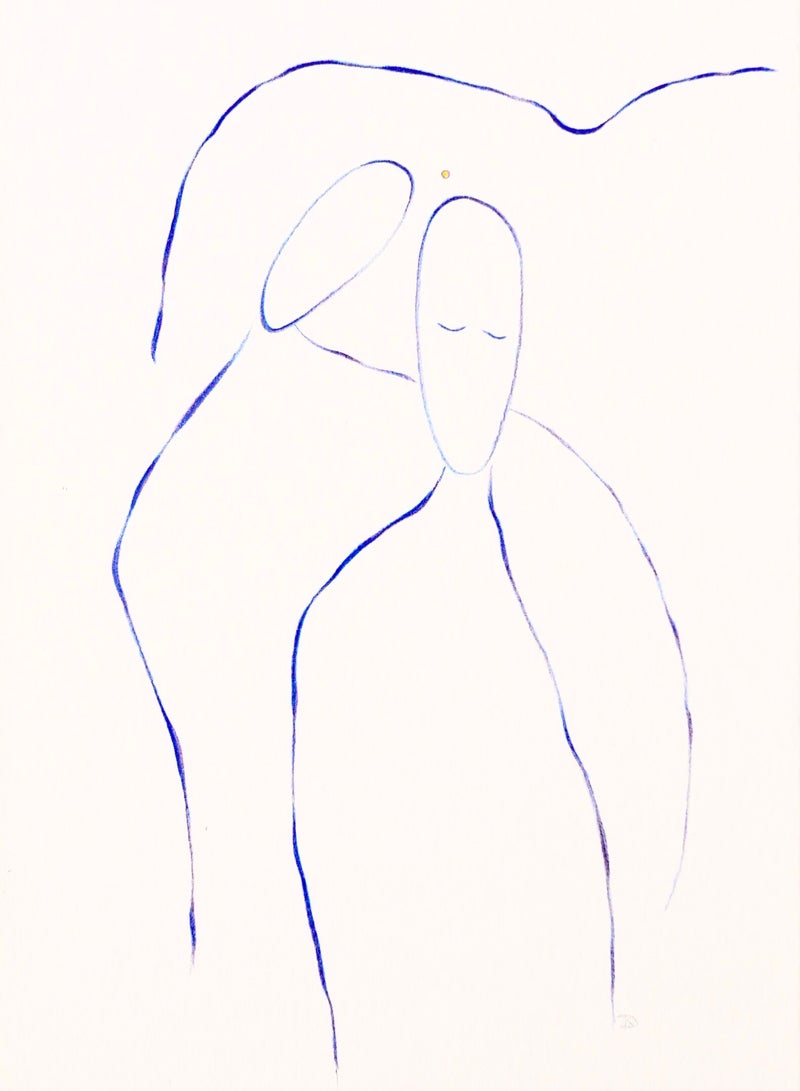 Net als bij de beelden is de vormentaal eenvoudig en ontstaat vanuit mijn intuïtie. Je zult er veelal iets menselijks in herkennen. Terug komende thema's in mijn werk -liefde, verbinding, tederheid, droom, licht- vormen de essenties waardoor ik me laat inspireren.